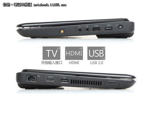 接口设计上,戴尔M102z虽然机身小巧,但仍然配备了3个USB2.0接口、HDMI和VGA等常用接口,基本满足用户的日常使用需求;除此之外M102z还配备了一个电视天线接口,通过它可以连接随机附送的电视天线或者通过转接线连接有线电视,设计非常贴心。