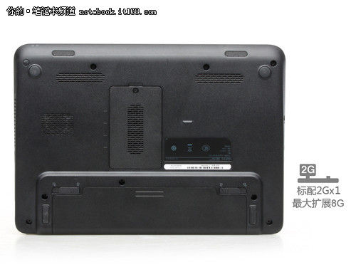 机身底部为用户预留了内存升级挡板,用户可自行升级内存,但如果升级硬盘则需要将整机拆开,难度较高。