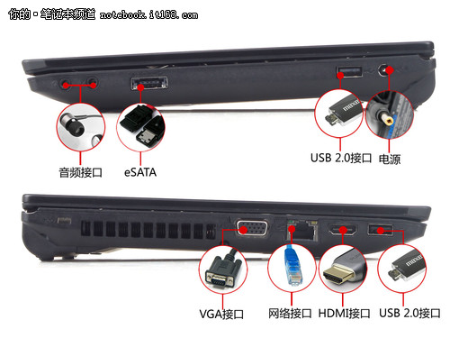 由于在模具规格上昭阳K27要明显小于主流商务本,这同时也增加了接口布局的设计难度。由于选择了外置DVD刻录光驱的解决方案,其产品在提供了常用接口扩展的同时,其接口布局也比较合理,主要接口均设计在了机身两侧,且接口分布比较宽松,在同时连接多种外设时也不容易发生冲突。