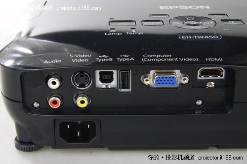 爱普生对TW450的定位虽然是720p的家用投影机,但该投影机却拥有2500流明的高亮度,对比度为3000:1,拥有1.2倍变焦,完全能够满足商务应用的需求。它采用了LCD(液晶)显示技术,在提供亮度的图像色彩外,也为用户呈现更深层次的黑白对比度,灯泡使用寿命为4000(标准)小时, 5000(经济)小时。在接口方面,常用的HDMI、D-Sub、AV、S端子都一应俱全,但只提供了一组HDMI接口,这对于高清视频源较多的用户来讲略显不便。