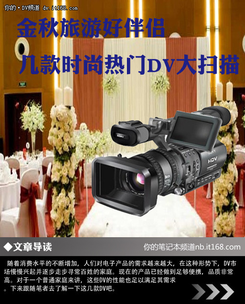 随着消费水平的不断增加,人们对电子产品的需求越来越大,在这种形势下,DV市场慢慢兴起并逐步走入寻常百姓的家庭。现在的产品已经做到足够便携,品质非常高。对于一个普通家庭来讲,这些DV的性能也足以满足其需求。下来跟随笔者去了解一下这几款DV吧。