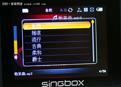 圣宝SV-909影音侠客在保证音质的同时机身还搭载了一块2.8寸26万色全彩高速TFT点阵屏,使其具有音乐播放功能的前提下,还能支持歌词同步显示电子书阅读、图片浏览、视频播放、日历、秒表、计算器、闹钟等功能。