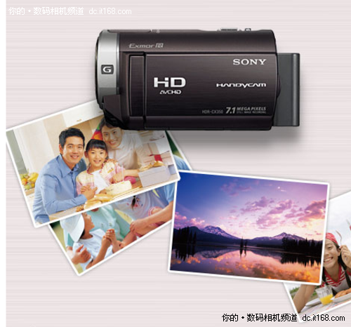 从外观设计上看,CX500E小巧紧凑,三围尺寸为125×52×64mm,重约370g,非常适合手小的用户使用。同时此机型特采用了不同于往常的波尔多棕的崭新色彩,让它看起来更加时尚精致,适合追求时尚新潮的用户。索尼HDR-CX350E配备了一块有效像素为23万2.7英寸宽视角液晶屏,420万总像素的背照式“Exmor R”CMOS影像传感器,将其感光能力提升为传统感光元件的两倍,并采用了“BIONZ”影像处理的像素插值技术,可拍摄有效像素达710万像素静态图像。同时支持人脸检测和笑脸快门,应用了智能的人脸记忆功能,让拍摄变得更有趣充满创意。兼容无线蓝牙、记忆棒,SD/SDHC、支持(RMT-835遥控器)双重刻录,支持一键刻录DVD。
