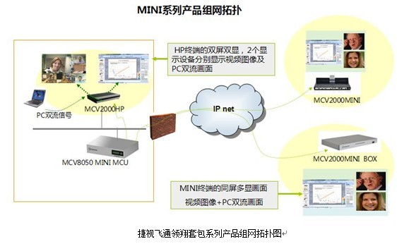 领翔套包计划包括基础套装和升级套装两个系列。其中,基础套装以捷视飞通推出的“珑视”系列为基础,包括一台mini MCU以及4台MCV2000mini一体化终端,全方案以mini系列设备覆盖整个计划方案,打造应用灵活、适应性强、便捷维护的系统组合方案,可广泛应用于企事业用户小点数的日常音视频交流会议。升级套装则专门为全高清需求用户贴心设计,在该套装中组合MCV2000HP高清720P分体式高性能双流会议终端,可满足中心会场发送高清双流信号应用,各分会场可同屏接收显示会场图像及双流数据,并有多种画面组合切换模式,广泛应用于企事业行政、教育培训、金融业务分析讨论等数据会议场合。