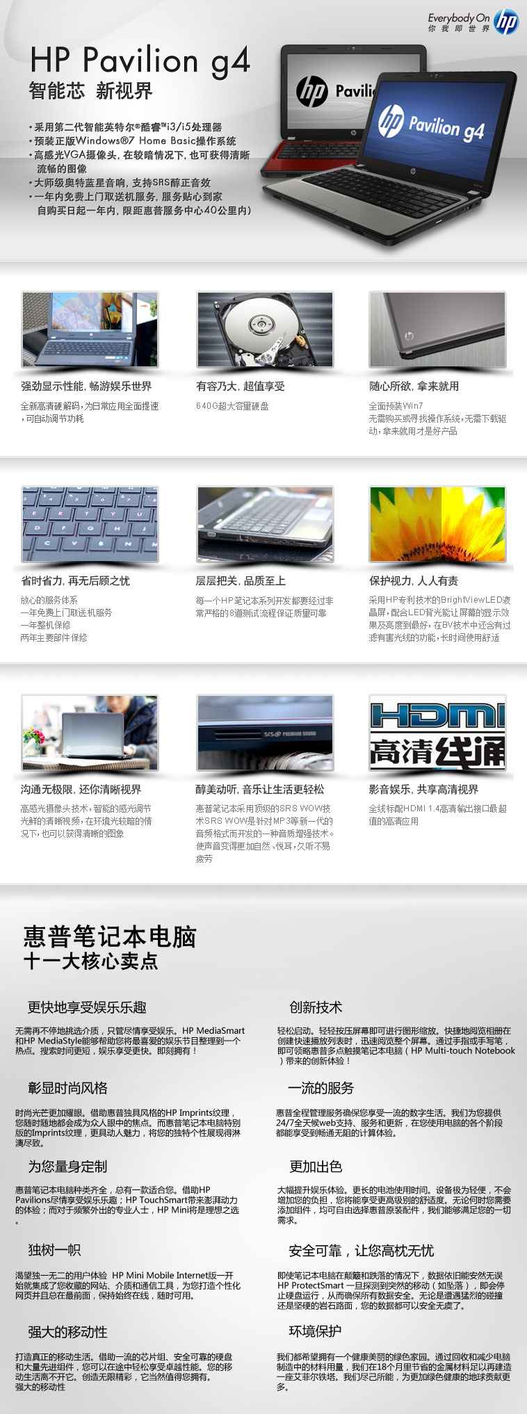 * HP Pavilion畅游人g4系列笔记本电脑经精心设计钛金灰供您选择,可满足您丰富、移动的生活方式需求。