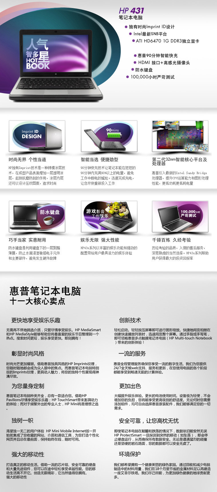 惠普H431 B0M08 采用广泛的安全解决方案,高级多媒体功能和音响技术为您带来最佳选择。