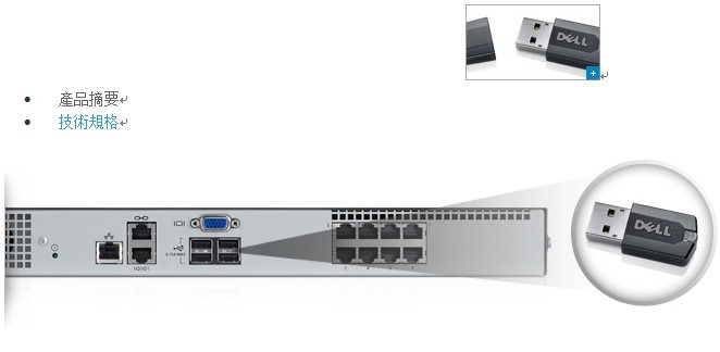 Dell KVM 1081AD 可支援高分辨率宽荧幕视讯、支援智慧卡在 USB 的共同存取卡 (CAC) 功能,并配备 4 个 USB 2.0 连接埠。