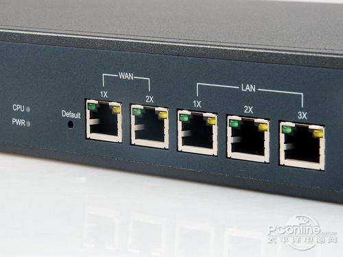 磊科NR266-E是一款双WAN口接入出租屋路由器,拥有两个10/100M自适应RJ45以太网WAN口,和三个10/100M自适应RJ45以太网LAN口。在这些以太网口的旁边则是电源和CPU状态指示灯和用来恢复出厂设置的Default键。
