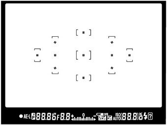 | 取景器描述 | 带对焦框的 B 型光亮磨砂对焦屏Mark V(可显示取景网格) |