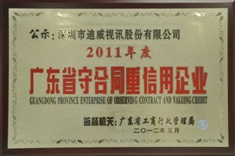 近期,经广东省工商行政管理局考核公示,深圳市迪威视讯股份有限公司(以下简称“迪威视讯”)被授予2011年度“广东省守合同重信用企业”称号。
