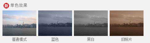 新增的单色效果,可以拍摄三种单色调的照片,即“黑白模式”、经典的“旧照片模式”以及富于艺术感的“蓝色”效果,用户可根据喜好轻松拍出想要的独特氛围及充满趣味的照片。 |