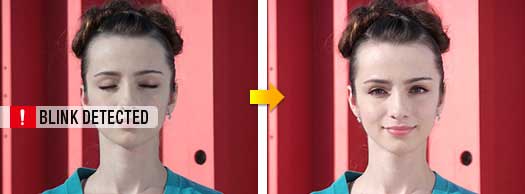 如果画面中有人眨眼,相机会发出警告,让您选择重拍照片或放大脸部以决定保存还是删除图像,然后再开始拍摄下一幅照片。