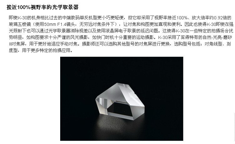 取景器描述 可更换自然-光亮-磨砂 III 对焦屏,视野率约100%