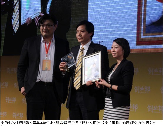 著名电视节目主持人、企业家——东方风行集团创始人李静最终当选“创业邦—2012中国年度女性创业人物”;小米科技创始人雷军荣获“创业邦2012年中国度创业人物”。