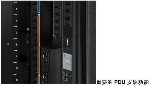 配电:集成式托架可为立式配电装置(PDU)提供免工具安装。