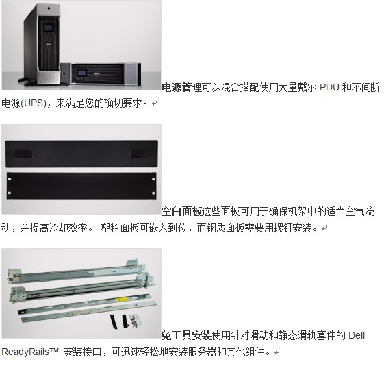 为了提高数据中心效率,戴尔提供一系列附件来帮助您进一步提高电源管理、增强空气流动并简化组件安装。 其他选项包括机架式风扇、设备架和1U KMM(键盘/显示器/鼠标)控制台。
