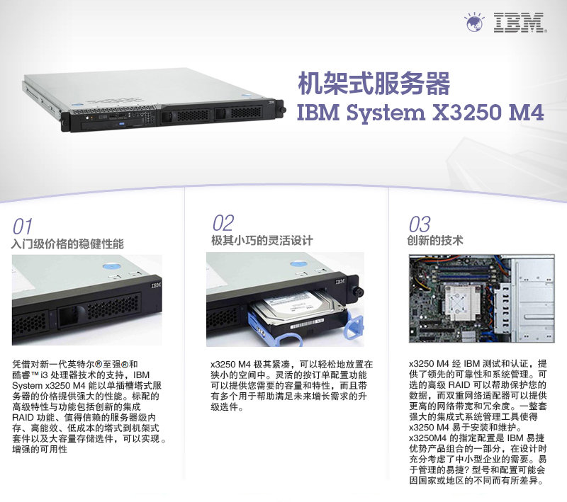 IBM x3250 M4机架服务器 2583I14(i3 4G 2个硬盘位)
