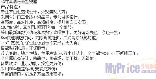 vista 42寸 高清液晶监视器低价促销3900元!!价格优惠!!有兴趣的朋友可致电0755-82532708、13682542486进行咨询。最好的价格,专业的服务,深圳伟思特科技有限公司现大量商品特价分销!!!期待您的来电。