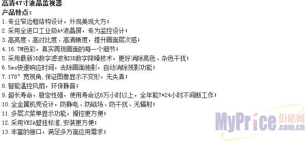 vista 47寸 高清液晶监视器低价促销4700元!!价格优惠!!有兴趣的朋友可致电0755-82532708、13682542486进行咨询。最好的价格,专业的服务,深圳伟思特科技有限公司现大量商品特价分销!!!期待您的来电。