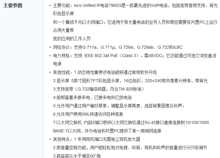 CISCO CP-7965G网络电话机再降价仅3500元!!价格优惠!!有兴趣的朋友可致电13710513915、 13711618822进行咨询。最好的价格,专业的服务,期待您的来电,联系人黄先生。