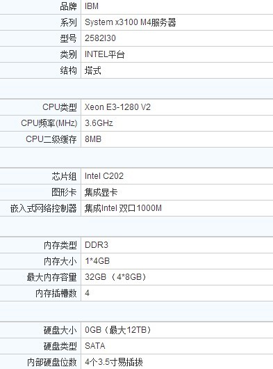 IBM X3100 M4塔式服务器 2582i30(E3-1280 4G 无硬盘/标配4个硬盘位 DVD 键鼠 H1110 RAID 0,1,10) 11099元