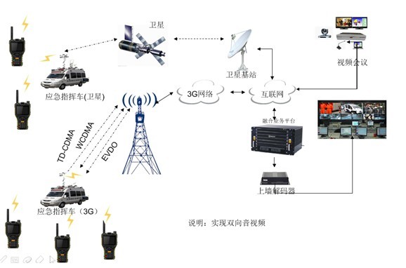 l 应急指挥车通卫星车载基站/3G车载基站接入到一级应急指挥中心;