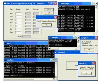 速度快和容易使用让LINDO Systems, Inc. 公司成为求解最佳化模型软件的领导供货商。LINDO Systems线性、非线性和整数规划的求解程序已经被全世界数千万的公司用来做最大化利润和最小化成本的分析。应用的范围包含生产线规划、运输、财务金融、投资分配、资本预算、混合排程、库存管理、资源配置等许多领域。
