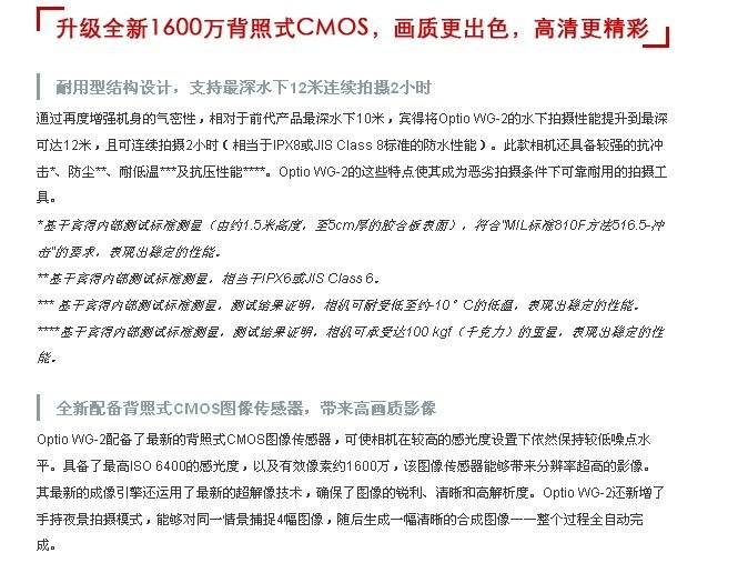 PENTAX 宾得 Optio WG-2 三防数码相机 (黑色)