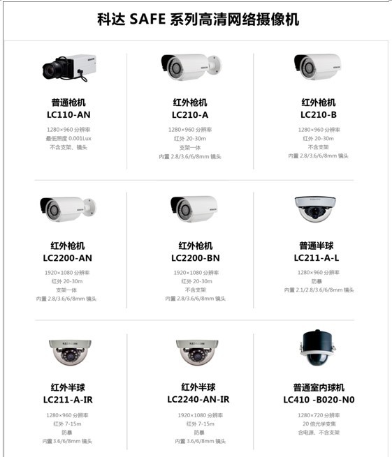 如需了解科达SAFE系列通用高清监控产品详细信息,请浏览: