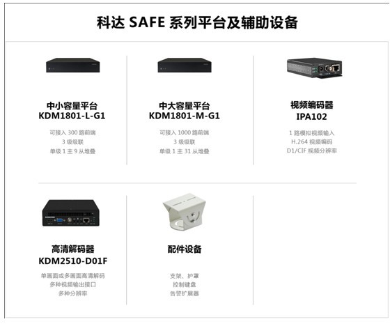 为满足端到端的高清监控部署需求,此次发布还同步推出了SAFE系列平台、视频编码器以及高清解码器等相关辅助设备: