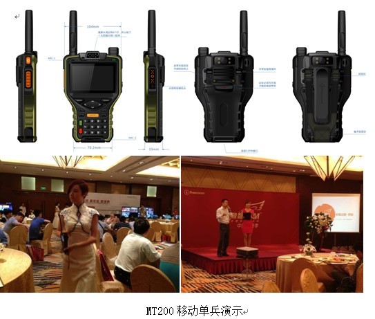 捷视飞通公司“融智”UCM多媒体通讯系统重拳推出的MT200移动单兵智终端,成为本次巡展贵阳站众多产品展示中的“小明星”。MT200移动单兵智终端是捷视飞通公司为城市移动执法、部队等移动场合应用定制开发的功能强大的移动智能终端,是基层和治安管理多样化、高效率系统应用的有效补充。该终端设备接入UCM系统统一管理,能够快速的将警力调动到一线,实时记录执法过程,实时指挥执法过程,快速达到执法目的,真正意义上实现城市治安监控点面结合的应用需求。