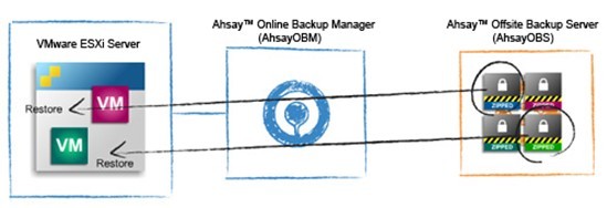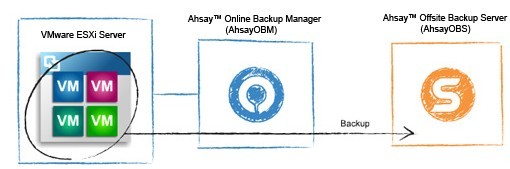 AhsayOBM 全功能的客户端备份程式具备了 VMware 备份模组,可将 VMware ESX、ESXi、Server、Workstation、Fusion 及 Player 内的独立虚拟机器备份到 AhsayOBS 上。如需备份 ESX 或 ESXi,你需要将 AhsayOBM 安装於一台和 ESX 或 ESXi 处於相同网络上的电脑上;如要备份 Server、Workstation、Fusion 及 Player,则只需要将 AhsayOBM 安装於这些物理机器之上即可。