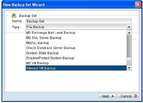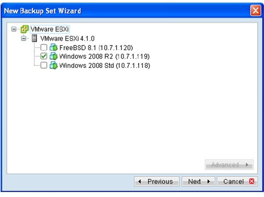 步骤 1: 选择你已设定的 VMware 的备份集。