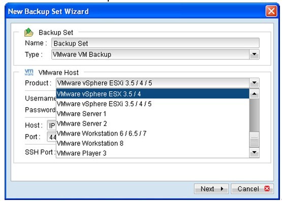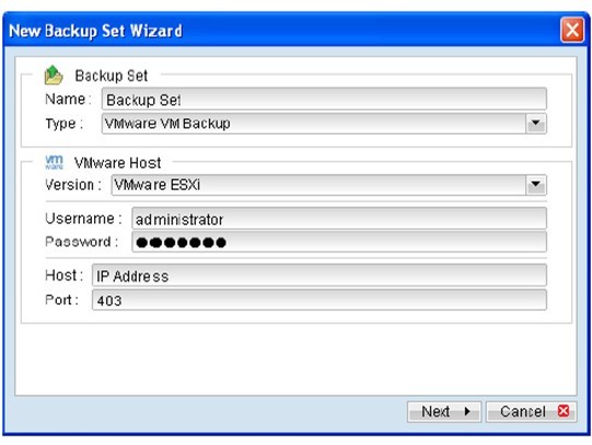 以下为 VMware ESXi 建立备份集的步骤供参考,其他型号的 VMware 主机的设定方法亦大致相同。