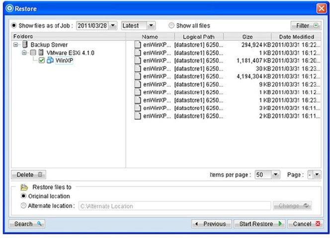 可选择还原部份虚拟机器的组件,例如:VMDK,以方便系统管理员作手动还原