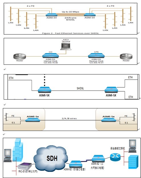 shdsl可以支持多种协议,最新的SHDSL支持EFM协议,支持多对线传输. TDM有E1、V35、以太网三种接口,在铜线上实现高速对称传输.采用PAM16、PAM32 编码,兼容 G.991.2 和G.994.1 标准.支持Annex.A、B、G、F、AF、BG模式.可提供的对称传输速率范围为:64Kbps 到 22.8Mbps