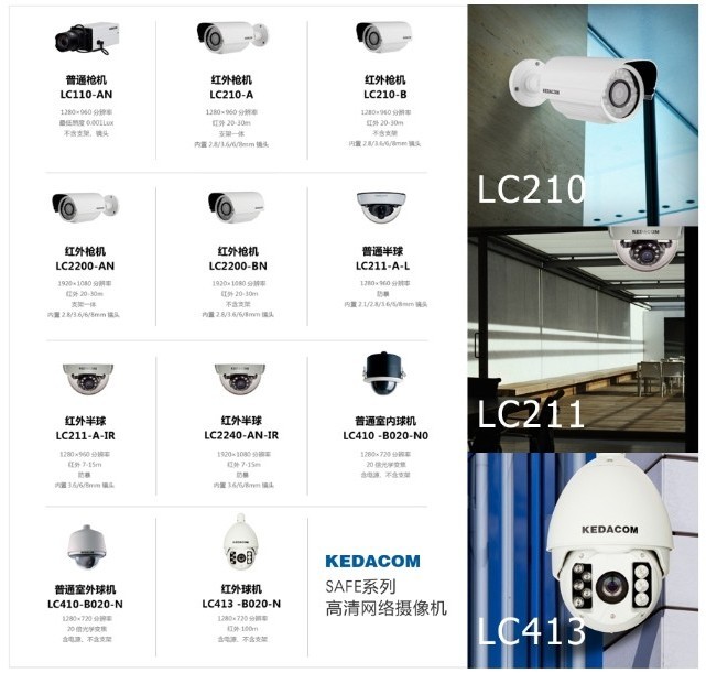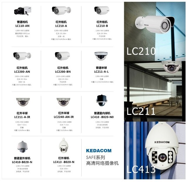 从2006年推出首款网络摄像机,到2009年推出720p百万像素高清网络摄像机、2010年推出1080p两百万像素高清网络摄像机,科达在网络摄像机领域积累了深厚的技术及产品研发经验。目前,科达高清网络摄像机产品线日益丰富,已形成枪机/半球/快球等多种形态、低照度/红外/宽动态/3D降噪等多种功能、室内/室外/卡口/电警/审讯等多种应用的完善的产品系列,并获得了广泛的部署。