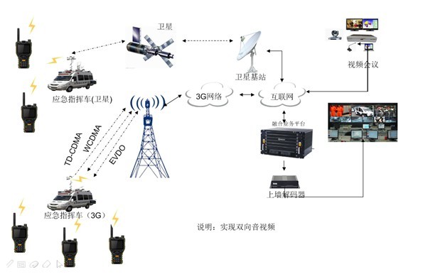 l 应急指挥车通卫星车载基站/3G车载基站接入到一级应急指挥中心;