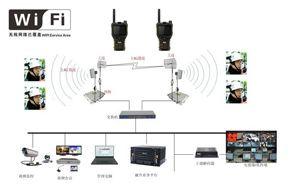 Wi-Fi是一种能够将个人电脑、手持设备(如Pad、手机)等终端以无线方式互相连接的技术,在车站、机场、港口、大型的工业/科技园区广泛应用。我司自主研发的移动单兵智能终端支持WiFi组网,接入自主组网的WiFi无线局域网,实现双向音视频功能,提高保安队伍的执勤、工程师现场处理机械故障、现场事故处理的效率。