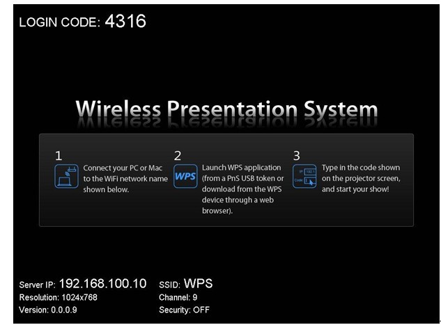 Features 支持操作系统: Windows Win7, Vista, XP 支持MAC无线投影功能(OS. 10.5版以上)。 支持iOS/Android/Blackberry/Windows Mobile 5/6 手持装置 随插即秀(Plug and Show)!无需安装软件,立即无线简报。 四分割舍(4-to-1)画面投影,把一台投影机当成四台使用,四台计算机可同时投影至同一台投影机上,可提升会议生产力。 智能型手机无线投影,实现免计算机(PC-less)的简报新趋势。 会议控制功能,让会议的进行更佳流畅、有效率。 提供会议的登入码、无线加密WEP/WPA/WPA2以及GateKeeper功能可保护简报内容,以及保护公司网络的安全性。 支持高效能的影音投影。 支持待机画面更新功能。 支持SNMP管理程序。 支持AP-Client模式。 支持WiFi-Doc轻易的可播放office系列的文档。