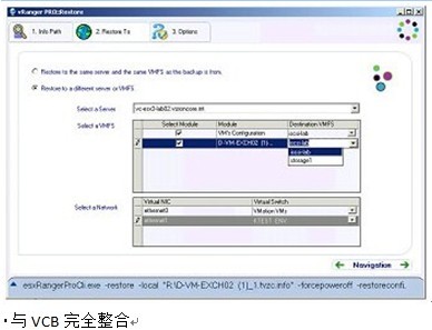 虚拟机图像文件可被还原到与原先备份作业相异的ESX Server上。