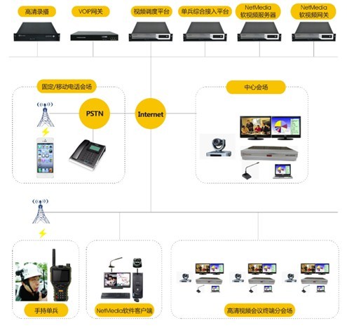 在应急指挥中,可通过普通电话和网络视频终端参与调度。