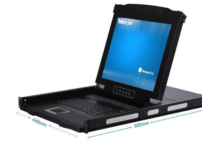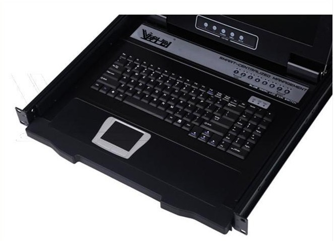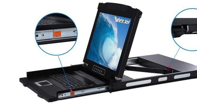 LCD KVM多电脑切换器,为一组控制设备,其允许从一组控制端(键盘、显示器、鼠标)安全控管高达8台电脑;其整合了LCD屏幕、键盘及触控板于抽拉式的机体内,并可安装于1U高度空间机架上。LCD屏幕及键盘/触控板模块可以抽拉出来,为了提高您机房内空间使用的效率,当不需要使用时,可以将其收回,置于机柜内,节省了键盘、鼠标、监视器所占用的空间。