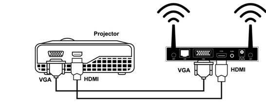 1) 将投影机VGA/HDMI 连接线接到WPS主机的VGA/HDMI接头,并打开投影机的电源。