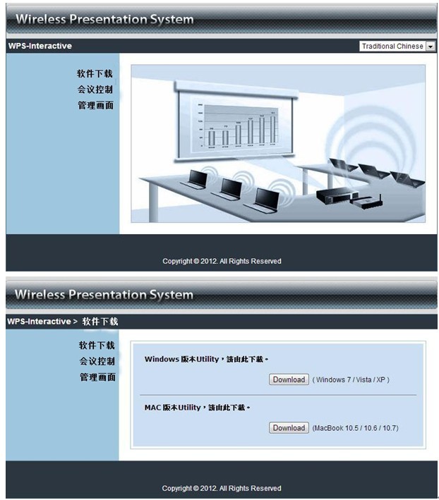 WPS是个开会不可或缺的无线投影设备,不仅可让现有的投影机立刻升级为高规格的无线投影机,彻底摆脱插拔VGA线的麻烦之外,其极简化的操作设计可让使用者快速上手,能在三秒内切换投影画面。达到传统投影机无法提供的功能,立即提高简报与会议的流畅性与生产力。