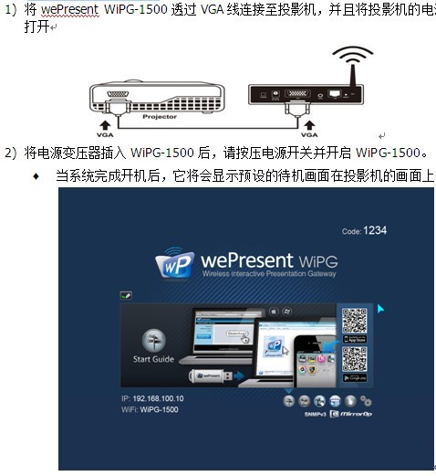 ePresent WiPG1500是一套专业的无线投影网关器。结合这““Interactive”和“UST/UoIP”功能为最革命性的WiPG-1500,您可以使用PC、Mac、iPad、iPhone及Android装置透过无线网络功能做投影,并且可以使用触控屏幕/电子白板、智能型手机或平板计算机进行远程投影控制。