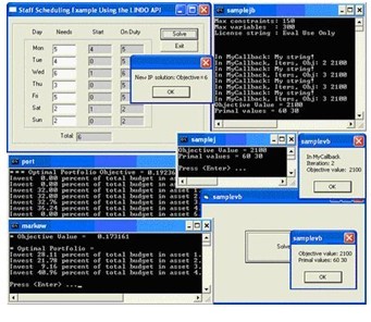 Lindo API 使用 Lindo API 可以建立求最佳解的应用程序。Lindo API 允许你将强大的线性、整数或非线性求解引擎挂入你已写好的应用程序中。 ■ 迅速、容易的应用程序开发 Lindo API 可以使你容易地将最佳化的功能整合到你自己开发的应用程序中。 Lindo API 附有完整的文件和范例帮助您迅速上手。 ■ 强大的求解引擎 Lindo API 提供的强大求解引擎包括针对线性、非线性(convex和nonconvex),二次和整数的最佳化。 ■ 完整的求解程序 Lindo API 提供了你需要的弹性和功能,不管你的应用程序是大或小,简单或复杂。它包含了数十个程序(routine)来公式化、求解、查询和修改你的问题。 ■ 广泛的文件和HELP功能 Lindo API 提供的所有工具和文件可使你迅速入门和上手。 Lindo API ?使用者手册有详细的功能定义。 ■ 分析不可实行和无边际模型(Infeasible and Unbounded Models) Lindo API 内含工具可以找出导致模型无合理解或无边际模型的原因。 ■ 建立因特网和企业内部网络的应用程序 Lindo API 允许你建立因特网和企业内部网络的应用程序可同时供多人使用。