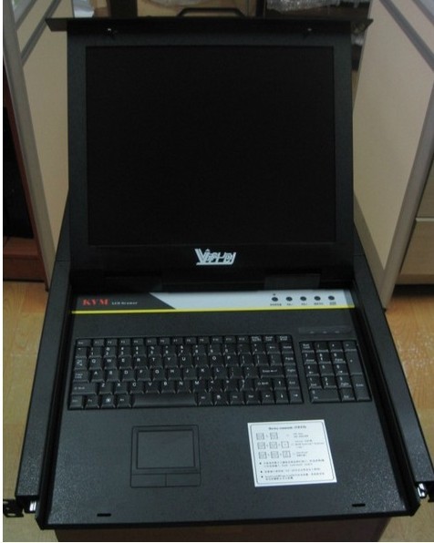 V科创 KC-1716整合LCD、超薄键盘、Touch Pad触摸鼠标板,集成在1U高度单元内, 抽屉式安装方式,彻底解决空间不足的问题。采用高品质A级17”TFT LCD、分辨率最高可达1600*1280,与标准键盘、显示器、鼠标相比,可节省85%的空间,内置16口切换器.OSD菜单使切换及调整更为方便。