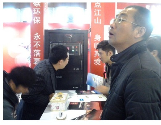 公司工作人员向参观者介绍激光工程显示设备特性