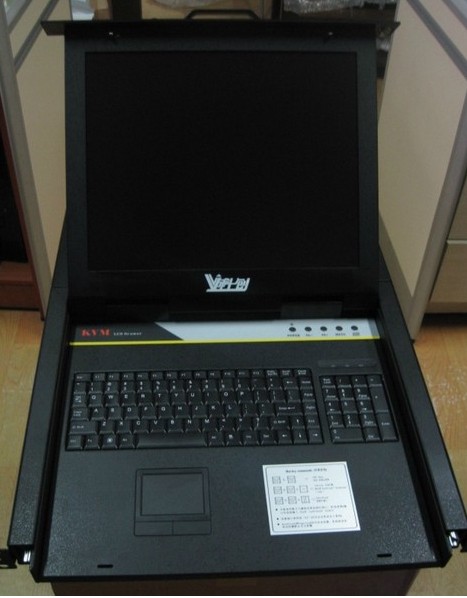 V科创 KC-1716C整合LCD、超薄键盘、Touch Pad触摸鼠标板,集成在1U高度单元内, 抽屉式安装方式,彻底解决空间不足的问题。采用高品质A级17”TFT LCD、分辨率最高可达1600*1280,与标准键盘、显示器、鼠标相比,可节省85%的空间,内置16口CAT5切换器.OSD菜单使切换及调整更为方便。